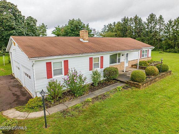 Ranch home on 1.55 acres, 2 bedrooms, 3 bathrooms with a finished room downstairs you could use as a bedroom or extra living room/office, along with 1 or 2 rooms for a workshop or extra living space along with a sunroom/dining area, with a 2 car garage (23x25) and a paved driveway.