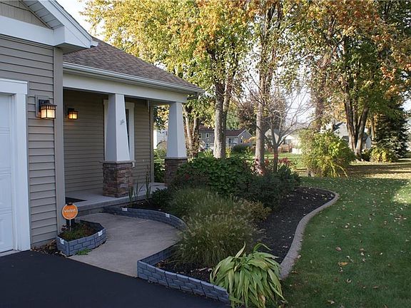 FIRST OPEN 10/29, SUNDAY 2 to 4 PM. Welcome home to this very private end unit ranch townhouse. Located in the back right of the complex, across from the pond, this 2 BR, 2 BA ranch offers an open concept plan with high cathedral ceiling throughout kitchen, dining and great room and features a corner gas fireplace. The sliding glass door overlooks the patio and private rear yard. The MBR also offers a cathedral ceiling, ceiling fan, private bath and walk in closet. Bedroom 2 is perfect for guest room or office. 1st floor laundry with stack washer and dryer. Full basement offers a 12 course basement, high efficient furnace. Two car garage. By laws and new homeowner information readily available for review.