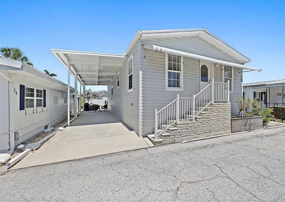 Don’t miss this opportunity to own a high-and-dry, turnkey furnished 2-bedroom, 2-bath home that DID NOT FLOOD during last season’s hurricanes! Nestled in the highly desirable 55+ Twin Shores community, this home offers luxury finishes including recessed lighting, crown molding, and a cozy wood-burning fireplace. Enjoy a spacious extra-deep carport with room for a golf cart, and step inside to find practical features such as a huge walk-in closet, indoor laundry room with washer and dryer included, and a primary suite with walk-in shower. This well-maintained home is ready for you to move right in! This gulf-to-bay community amenities include PRIVATE BEACH ACCESS, MARINA ACCESS, saltwater pool, social activities, and more. This is your opportunity to enjoy million dollar sunsets without the typical million dollar Longboat Key price tag! Twin Shores is a secret gem of Longboat Key- Near Longboat Key's renowned shopping and dining, as well as kayaking, boating, cycling, and fishing. During season, St. Armand's Circle features art and car shows, creating fun weekend activities for you and your visitors. NOTE: 2 year moratorium on leasing after purchase. HOA dues are $800/quarter, and boat slips may be rented on first come, first served basis. This unit is being sold AS-IS.