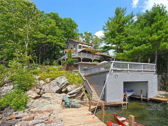 Exceptional Lake Winnipesaukee property offers 240 of waterfront, 180 degree views facing south to west of the lake, islands & mountains & offering gorgeous sunsets. Existing over-the-water boathouse, breakwater, 2 guest docks plus large deck over the boathouse for entertaining or just sitting in your lounge chair. Main property consists of 3 story open concept home, wraparound deck, finished lower level, & deck off master suite. Wonderful views from every room & 43,000 acres of beautiful water beckoning you to come out & play! The property sits on 3.3 acres w/privacy, wood lots & gorgeous lawns. Incredible and spacious 2 bedroom guest house ideal for overnight guests, built by John Sweeney w/highest quality & design, offering a beautiful master suite, open kitchen & living room that both open out to a large wrap around deck, w/views across the lawn to the lake. Multiple garage spaces in main & guest house, complete w/heat & room for a workshop. This property has it all!