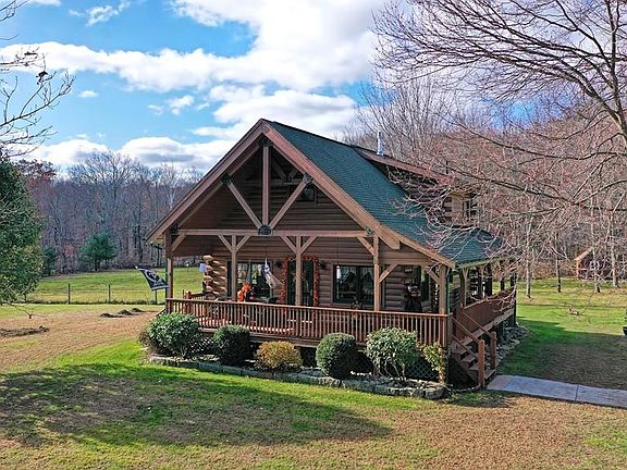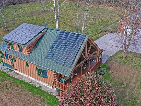 Looking to farm, have horses or livestock, or just want to vacation from home! Over 6.5 acres of land with two gated and fenced in fields with shelters for animals or hay, New England stone walls and a wooded area, orchard with apples/pears, berry patch and raised granite planting beds, property and grounds have been meticulously maintained. The house is a true log home with a wraparound porch, open and spacious main living area, Buderus heating system with radiant heat in basement and first floor, propane gas stove provides additional heat and ambiance. Other features include triple pane Anderson windows, 5.67 KW/DC SOLAR grid, a hot tub with deck, a three-car detached garage with walkup attic storage and attached paddock. Explore the possibilities of subdividing the land for an additional lot, 826 +/- feet of road frontage.