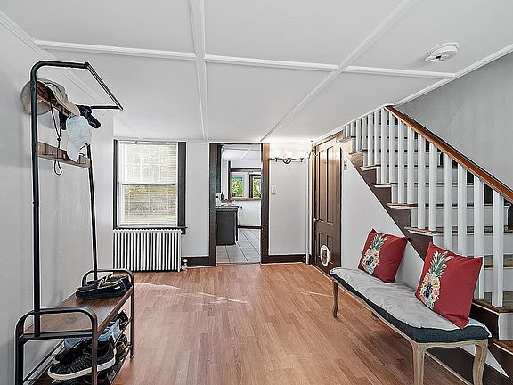 This home is in a prime LOCATION, and it checks off all the boxes! This bright This bright cape-style home is full of character and features 1,300+ Sq. Ft., three bedrooms, one bath, and is located right in the heart of Farmington. The first floor has laminate flooring and tile, a spacious living room, built-in shelving, a full bath, and laundry hookups. The large eat-in kitchen offers plenty of sunlight, a breakfast bar, extra cabinets, and direct access to your porch overlooking the backyard. The second level has all three bedrooms with plenty of storage space. The detached garage could be used for your vehicle or perfect for creating a workshop space. Recent updates: Water heater (2023), Roof (2017), and freshly painted porches. See this charming home today because it won't last long!