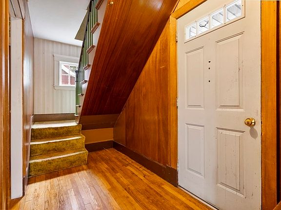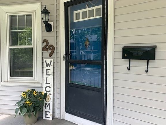 Charming "Old Style" Colonial Home...Welcome to 29 Upland Road~Enter from the covered front porch...first floor consists of a front living room, dining room (both currently carpeted, but hdwd underneath), eat-in kitchen, laundry room, bedroom, den/home office and a full tiled bath. High ceilings, numerous windows providing much natural daylight, hardwood flooring; both oak and maple, original moldings, trim and doors with glass door knobs. Second floor consists of two bedrooms, large storage/attic area-would make a great bedroom and a bath with a shower stall. Triangle Tube 3 zone gas boiler installed in 2006. GE electric hot water tank installed 2008. Partially fenced level rear yard with deck, large detached garage currently being used as a shed. Long driveway providing off street parking. Desirable area, off the beaten path yet close to Spot Pond, Stoneham Zoo, Hall Memorial Pool and Route 93. So much potential...incorporate some cosmetic improvements to make it your own!