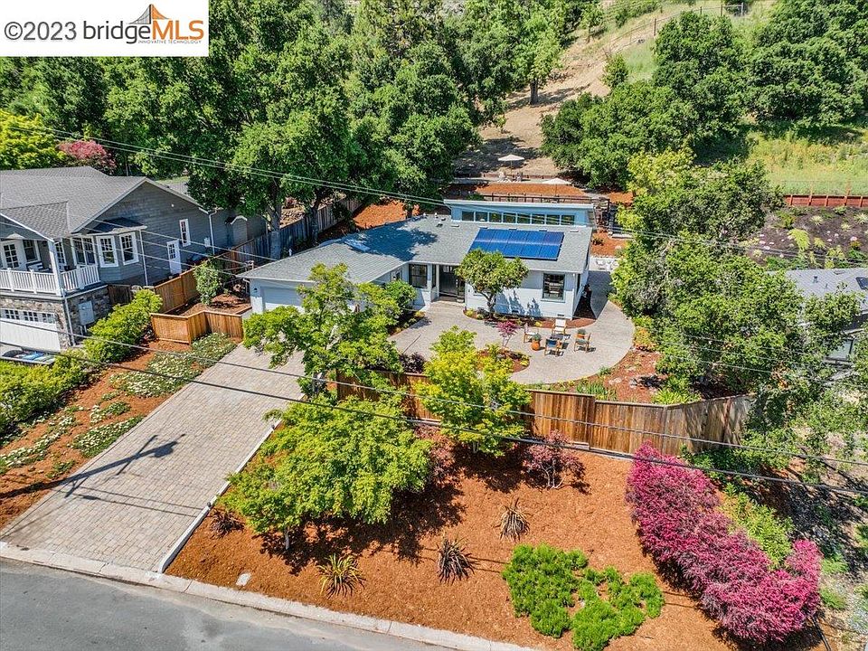 Sleepy Hollow rancher updated and expanded. Open floor plan. The spacious living area with soaring ceilings is anchored by a huge kitchen with beaucoup storage. The large granite topped island creates the perfect spot for "everything" from informal family meals to full-on entertaining. Against a back drop of verdant vineyards and beautiful open space, three different tiers of patios offer multiple use options and spectacular views. (Check out the upper tier at sunset!) The deep hillside lot invites your personal vineyard, or perhaps an orchard or a sunny vegetable garden. Three bedrooms include a large ensuite with his and her sinks and counters in the bath, and a large walk in closet that awaits your customization. Radiant in-floor heating, classic tongue and groove ceilings in the living areas, recessed lighting throughout, brand new washer, dryer and refrigerator, a 2.5 kw solar system, two Tesla power walls. Fully fenced property. Patios surround the home. Secure access through the front gates or the 2 car garage. Very productive citrus trees adorn the front yard. Highly rated schools. Minutes to the Sleepy Hollow Swim and Tennis Club and quick access to Bear Creek recreational areas. 3 miles to Orinda Bart and freeway.
