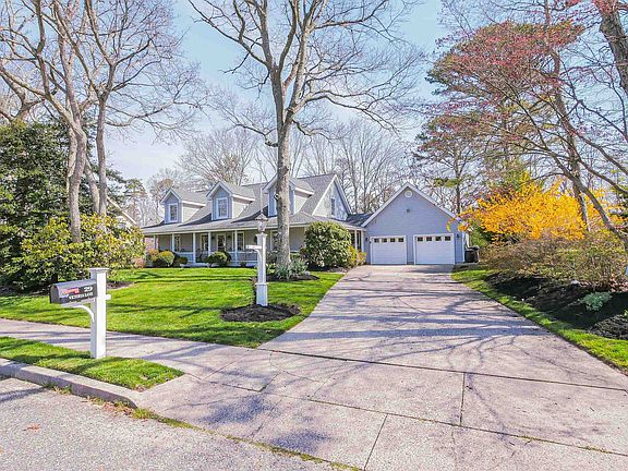 This charming cape cod-style home situated on a quiet cul-de-sac boasts three spacious bedrooms, with a primary suite conveniently located on the first floor, providing the option of one-level living. As you approach the home, you'll immediately notice the large wrap-around front porch, providing outdoor living space. Enter into the spacious living room featuring a cozy fireplace & hardwood floor. The stunning kitchen with Amish-built cabinets and granite countertops with an extra-large island, offers a sleek and modern look while still maintaining the home's traditional charm. The first-floor primary suite features a luxurious walk-in shower, heated tile floors and double sink vanity with modern fixtures and finishes. The combination of the traditional cape cod roof lines and high ceilings provides a unique and inviting feel to the upstairs bedrooms. The vaulted ceilings create a sense of openness and allow for plenty of natural light to flood in. The oversized two-car garage provides plenty of space for cars, with attic storage above. In the rear of the garage is the workshop that is the perfect space for hobbies or a home office. The beautifully landscaped yard is truly a homeowner's dream with several raised garden beds, which provide ample space for growing your own herbs, vegetables, and flowers. An outdoor shower, perfect for rinsing off after a long day at the beach or a workout and when it's time to relax and unwind, step into the inviting hot tub and let the stresses of the day melt away. Overall, this home is the perfect combination of modern updates and traditional charm, providing a warm and inviting atmosphere. Don't miss out on the opportunity to make 29 Victoria Lane your new home!