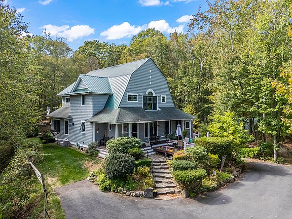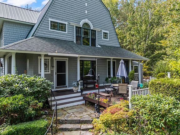 Perched atop a private hill, this stunning post and beam shingle-style home offers beautiful ocean views. Set on 2.42 acres, it features a porch and a spacious deck perfectly positioned to capture the coastal scenery.