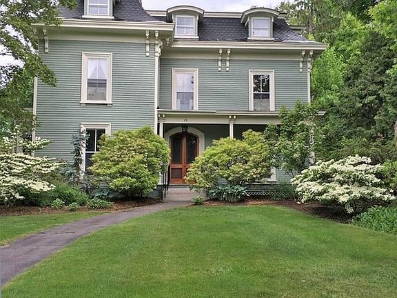 In the heart of the city is a stunning 4900+ sq.ft. historic Mansard Victorian. Situated on an acre of pristine park like grounds with flowering trees & perennials, this meticulously updated home maintains its historic charm & value. The main house & attached carriage house (guests, family or INCOME POTENTIAL) are grand in space & style. Imagine owning a piece of history with lots of present day amenities as the completely updated kitchen. Ideal location for privacy & proximity to town. HOME WARRANTY INCLUDED!