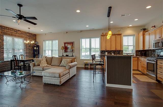Unit 301 is one of the most coveted units in French Broad Place. Originally designed and built for one of the developers, this unit is uniquely upfitted with brick accents, stone fireplace, and a contemporary design. It's also a corner unit with a highly sought after floor plan maximizing an open great room and large master bedroom with walk-in closets and custom shelving. Residents of FBP also get to enjoy the open rooftop terrace. See the virtual tour for 3D rendering of unit!