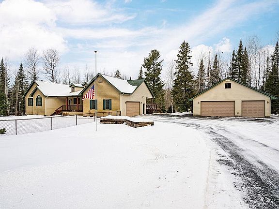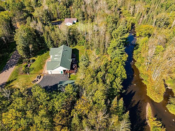 Park-like setting on the Midway River and only 1 mile to Esko schools. Roomy 5+BR/5BA contemporary home with walkout basement to great deck space. Sunroom greets you and gives access to the upper deck. Updated kitchen with new counters, backsplash, and flooring. All bathrooms have updated vanities. Master bath has great walk-in shower & bubble tub along with two closets. 2-car att garage with 11' ceilings and 3-car detached garage is heated and insulated with 9' ceilings and walk-up attic. Blacktopped driveway and fenced front yard. Family room in the lower level has a wet bar and fun wine bar under the stairs. Basement also has two bedrooms (one with a full bath attached), an additional full bathroom, and den. No flood insurance required! Roof on house & garage 2023. Electric: $128/mo average Sewer: $35/mo average