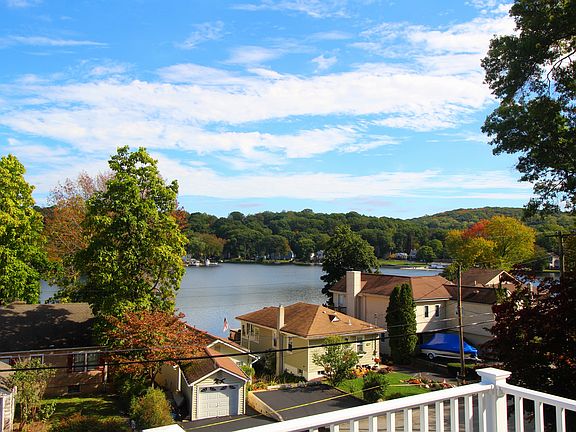 NEW HOME: Indian Lake with great lake views. Features large Trex deck for get-togethers and sunsets. Turn-key luxury home, Many Upgrades: Oak floors, Crown Moulding, GE Profile Kitchen with Granite, Center Island seats 6. Custom Cabinets, Wine Rack, Walk-in Pantry. Family Rm with Gas Fireplace, Back Paver Patio via Sliders. 4 Bdrm. and 2.5 Baths. Master Suite features Ceiling Fan, Walk-in Closet, and a Private Terrace high above lake. Perfect for sunrise and coffee. Master Bath with Travertine, Walk-in Shower, Double Vanity and Jetted Tub. Mud Rm. Custom Laundry, Oversized 2 car garage. Central Vac, 2 Zone HVAC, Basement rough plumbed for extra Bath. Walk-up attic. Surprise BONUS: Extra finished wide garage with electric. Perfect for Kayaks, Boat and more. Or as a Game Rm, Studio, or Workshop. Near NYC Trains.