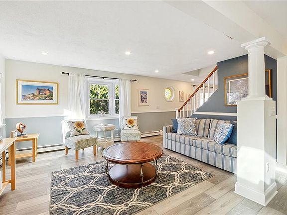 Beautiful Contemporary with 2-bedroom, 2-full bath home offers an inviting open floor plan with an abundance of natural light. The spacious primary suite boasts cathedral ceilings, adding a touch of grandeur with balcony overlooking scenic back yard. The updated bathrooms features sleek glass shower doors and ceramic tile. One of the bedrooms is conveniently located on the first floor. The kitchen is equipped with stainless steel appliances and opens to a charming dining area. Plenty of opportunity to relax with living and family rooms on first level. Step outside to a beautiful, private fenced-in yard with a large deck—perfect for enjoying cookouts and gatherings with family and friends. Updates include luxury vinyl flooring, replacement windows and Mini-splits for AC on both levels. There is a finished lower level area that can be utilized as a recreation room or flex room. Additionally, the property offers access to an association beach and is just blocks away from the river, providing ample opportunities for outdoor recreation. Outdoor shower ideal for rinsing off after the beach. Close proximity to all Narragansett Beaches, Shops and fine Restaurants. Ideal for investment, rental figures available.