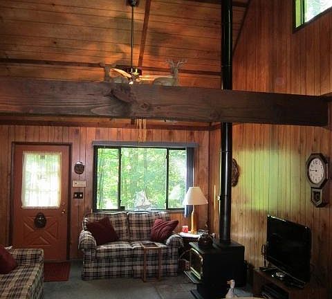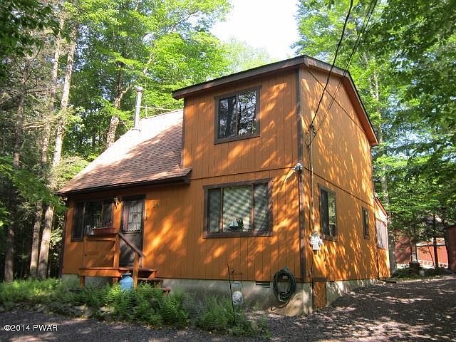 Original owners sadly parting with their lovely family vacation home in Wallenpaupack Lake Estates. Very well kept home sleeps 8 and features, cathedral ceilings, 2 bedrooms, (one bedroom and a huge loft), 1 full bath, nice screened porch, wood burning stove, living room, dining area, kitchen, storage shed, and a woodsy feel. House is in great shape! Furniture can go with house with an accepted offer.