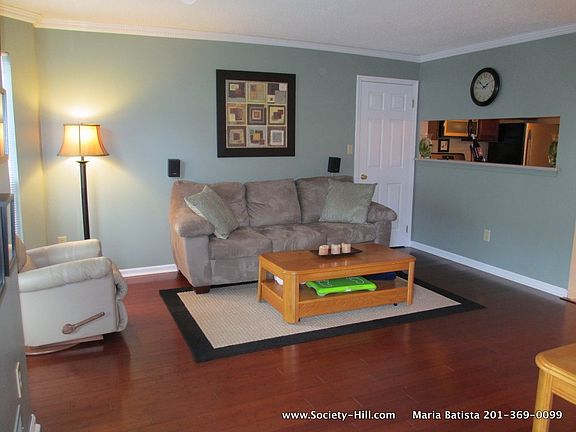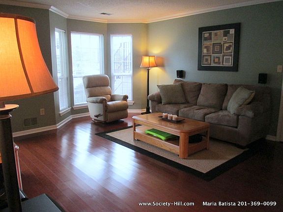 Gorgeous 2 Bedroom, 1 bath gardenhome with gleaming wood floors, large eat-in kitchen with upgraded countertop and stainless steel appliances, crown moldings, renovated bathroom with huge soaking tub, master bedroom with access to bathroom and an enormous walk-in closet, recently replaced furnace and hot water tank. Central Air, Patio and Assigned Parking. Great flowing floor plan. Located in the gated community of Society Hill at Jersey City. Tenant responsible for all utilities.