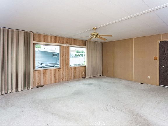 This is a blast from the past! This home features tons of the original charm and is in great shape. Bring your imagination and this place is ready shine in all its glory. This home offers a large living area with wood paneling and extensive windows, a beautiful antique built in bar in the eat in kitchen. The kitchen is bright and clean with an electric stove and dishwasher with no lack of storage space. Don't let the shag carpet scare you, the two bedrooms are extremely spacious and with built ins and walk in closets. There are two retro bathrooms, long driveway, storage shed, interior laundry room, two entrances and a great patio. Rancho La Paz is a 55 or better community and features onsite management, pool and spa, clubhouse and is gated!