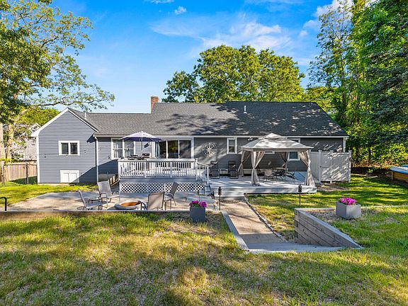 A modern day ranch style home tucked into the Sagamore Beach Community offering the Cape Cod amenities without traveling over the bridges. A location for a commuter lifestyle & the outdoor enthusiast with the Cape Cod Canal around the corner & Scusset Beach close by. This home is meticulous & refreshed offering open spaces with great transition from indoor to outdoor living. The remodeled kitchen boasts a bay window radiating sunshine, dining space, stainless steel appliances, granite counters & generous sized window over the sink providing views of the private backyard that expresses pride in ownership with a generous sized deck, outdoor shower, designated firepit area & well manicured lawn for gardening, games and time in the sun. A vaulted foyer area leads to a cozy living room with a wood burning fireplace , 2 bedrooms and an en-suite to include a walk-in shower. The lower level offers a large family room with ample space for overflow, a workshop area and another room for guests, home office or studio. The home has a combination of hardwoods in all common spaces, new carpets in the bedrooms and porcelain tiles in each bathroom. Driveway is doublewide.