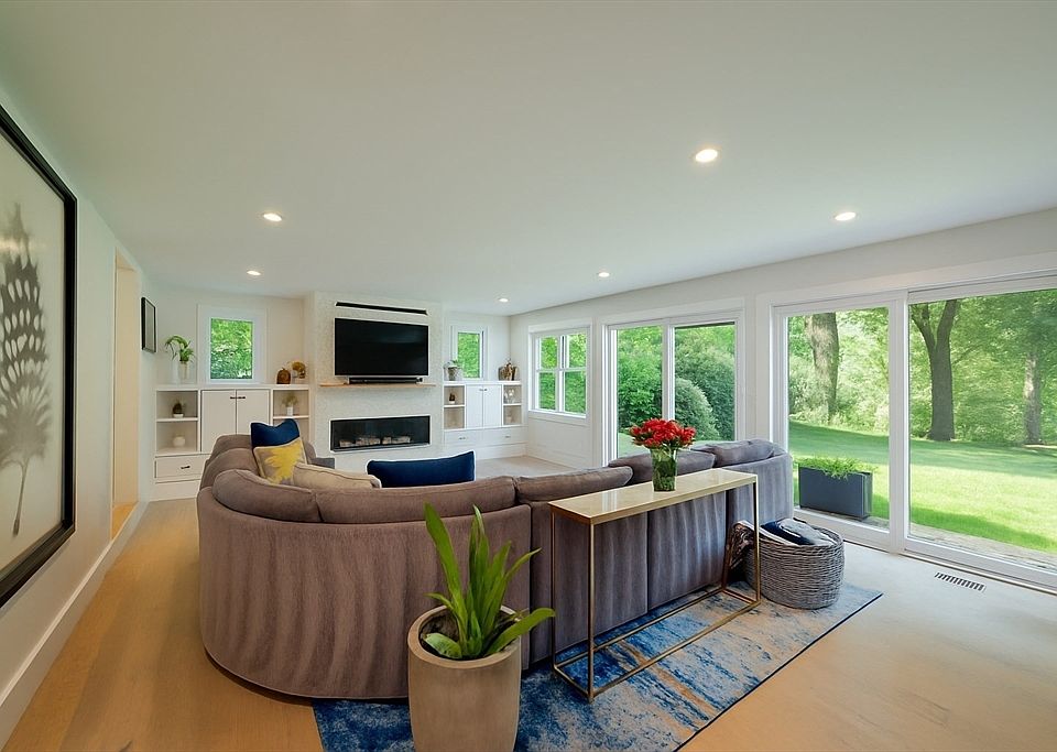 Set along the banks of the Charles River, this stunning home blends luxury, function, and an idyllic natural setting. Behind its modest façade, the interior unfolds as a custom contemporary retreat. Sweeping river views and frequent wildlife sightings keep you connected to nature. The 2nd-floor primary suite is a sanctuary with vaulted ceilings, a private balcony, and spa-like bath w/radiant heat flr. Four additional bedrooms and a versatile laundry/den provide comfort and flexibility. On the main level, a sophisticated dining room sets the stage for entertaining, while the chef’s kitchen with oversized island anchors the home. The living room features custom built-ins, gas fireplace, and sliders to a tranquil patio. A spacious mudroom links to the heated garage. The finished lower level adds a sound-insulated music studio, teen lounge, and abundant storage. In a welcoming neighborhood near Elm Bank, this home offers riverside living at its finest—luxury, comfort, and community in one.