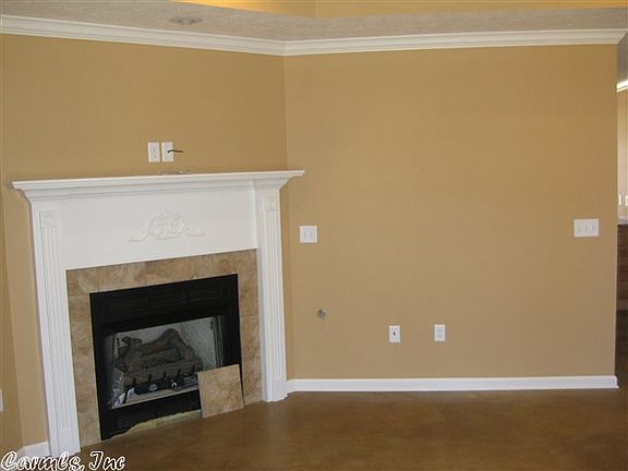 Stained floors, custom cabinets, gas log fireplace, architectural shingles, all brick exterior, concrete patio.