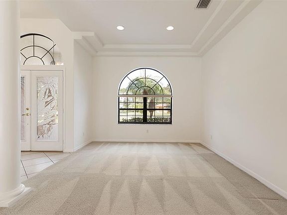 Under contract-accepting backup offers. Discover this bold and beautiful custom-built residence by Town and Country, sitting on 1/2+acre homesite. An expansive front lawn and a car lovers' dream, a long and wide driveway, are your first introduction to this lovely property. The home owner thoughtfully designed the home for both growing families and multigenerational living. Entering the home through the double glass etched doors is the formal living and dining space. Large arched Palladium windows bathes the home with nature light. As you enter your eyes are drawn to the lanai and pool area beyond the glass sliders. This is a split floor plan design which allows for maximum privacy to the homeowner, as the primary suite is located on one side of the home and the other side is the area for family and guests. The primary bedroom suite is appx 320 square feet allowing plenty of space for furniture placement. Glass sliders gives private access to the lanai and pool. Great for the early morning cup of coffee and morning swim. The suite has a well appointed bathroom with double sink vanity, tiled walk in shower with multiple shower heads, jetted soaking tub, private water closet and 2 large walk in closets. The heart to this home is the kitchen that is open to the family room and breakfast nook. Attractive detailed wood cabinetry accented by glass fronts and crown molding, tile back splash and natural stone counter tops . The center island offers extra prep and serving space. The owner has installed new stainless-steel appliances - refrigerator, stove, microwave, and dishwasher. Enjoy casual meals in the breakfast nook, highlighted by mitered glass window with views to the lanai, heated pool with spa and the spacious backyard. The cozy family room is anchored by a fireplace, framed by two large arched palladium windows, functional built in architectural features and sliding glass doors to the outdoor living space. A pocket door provides privacy to the three large additional bedrooms, each with ample closets and two additional full bathrooms. The side of the home has its own access to the pool area ensuring convenience for family and guests alike. This home features a bonus room, converted from a portion of third garage bay with private access to the side yard. This thoughtful conversion preserves plenty of garage space for storage, motorcycles or lawn equipment. Cathedral, vaulted and trey ceilings, recess lighting, attractive hanging light and fans fixtures plus the built in sound system throughout the home add to the charm and functionality of the property. An extra bonus - the lanai is plumb for a future outdoor kitchen. The home's interior was painted in summer of 2025, as well as the lanai and pool deck. The property is 1/2 acre + with a fresh water canal abutting the property. Think of the hours of outdoor enjoyment with family and friends. Roof 2025. HVAC 2017 Please use the 'AS IS ' FOR SALE AND PURCHASE CONTRACT Put this on your must see list.