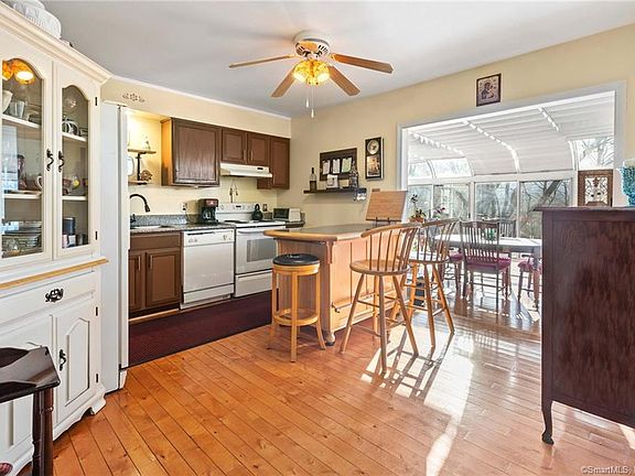 Lovely In-Town 3 Bedroom Ranch with Charming Front Porch! Cozy and sunny layout with a formal living room with hardwood flooring, updated eat-in kitchen and bright sunroom filled with light, perfect as a dining area or home office. The main level also offers two spacious bedrooms and a full bathroom. Downstairs you'll find a versatile Family Room with walk-out, plus workshop, laundry area, full bath and huge master suite that walks out to the back stone patio with built-in fire pit and grassy yard. Ideal for those wanting bedrooms on separate floors. Rare contemporary construction for town center, built in 1999. Amazing location--just a short walk to the New Milford Green with its trendy restaurants, small shops and theater, plus railroad station and parks. Also just a few minutes to Route 7, New Milford Hospital and and the private town beach and park on Candlewood Lake. Nothing to do here but move in and enjoy!