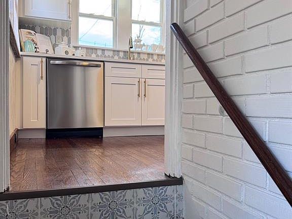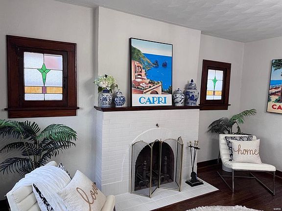 Adorable Tudor style home sits perfectly perched on the quaint Wesley Drive in West Belleville. Like a storybook cottage, Wesley’s steeply pitched gable roof and original art deco-stained glass will stun, while its beautifully renovated interior will satisfy any savvy home buyer. The three bedrooms include a large primary suite with ensuite bath, sitting room and 3 closets including a walk-in/reading nook. A bonus sunroom attached to a large main floor bedroom/primary suite. Two and a half fully updated bathrooms have designer tile work, lighting and vanities. New plumbing, electrical service and double pane vinyl windows. Refinished original hardwood flooring throughout with original doors and millwork. A wood burning fireplace flanked by two stain glass windows. Light-filled open kitchen with breakfast bar, new stainless-steel appliances, quartz countertops, new cabinetry and designer backsplash opens to dining room. Finished basement, two-car, oversized detached garage.