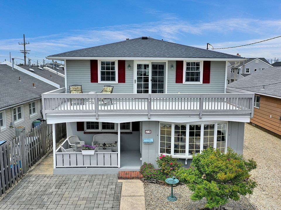 Light and bright sizable classic beach block home in the desirable North-end of town offers plenty of room for extended family and friends. Five bedroom (two on the first floor w/ one currently being used as a den) with four en suite baths for privacy and ease. An extra half bath w/ laundry is on the first floor. Covered porch in the front yard with a deck in the back makes relaxation effortless. Upstairs deck off the master bedroom is 28X10.5 and offers a picturesque setting. Shed in the backyard offers ample storage for bikes, beach chairs, and surfboards. Outside shower for your convenience. Amazing investment/rental potential being a short walk to the town shops and restaurants. Start your summer off right by making this home your private getaway at the shore.
