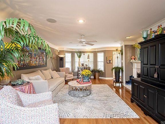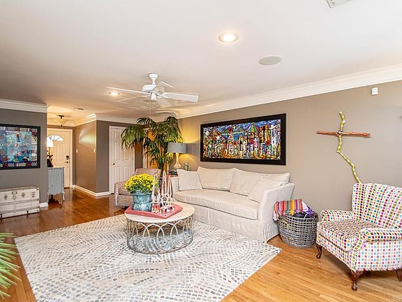 AMAZING 1-level updated brick in move-in condition, enclosed with privacy wood fence & brick wall & patio with pergola-added this year. Patio furniture included except urns; fountain stays, with 2024 new pump. Hardwoods throughout, tile, some carpet, fireplace with logs open to both den-family room & kitchen/hearth-room. Built in bookshelves. Washer/dryer/fridge/FP screens, shelves on west side of garage, custom drapes, plantation shutters & blinds plus trampoline & Barnhart Furniture in master from White's furniture except antique desk all remain. Lift from 2-car garage to floored attic. Office furniture (long desk, smaller computer desk, file cabinet, hutch) remain. Living room being used as office/music room. Tankless HWH. New in 2024, 50-year architectural Corning Roof, gutters & under-counter lighting in kitchen. T-shaped breakfast island. Corian counters. All closets custom designed by Closet Factory. SONOS Sound System remains. 2 speakers in den, 2 in kitchen, 2 on patio. Sprinkler System has had the backflow replaced in 2022. PLEASE ASCERTAIN NEW TAXES! THIS INFO REFLECTS FROZEN REAL ESTATE TAX! SHOW AND SELL!