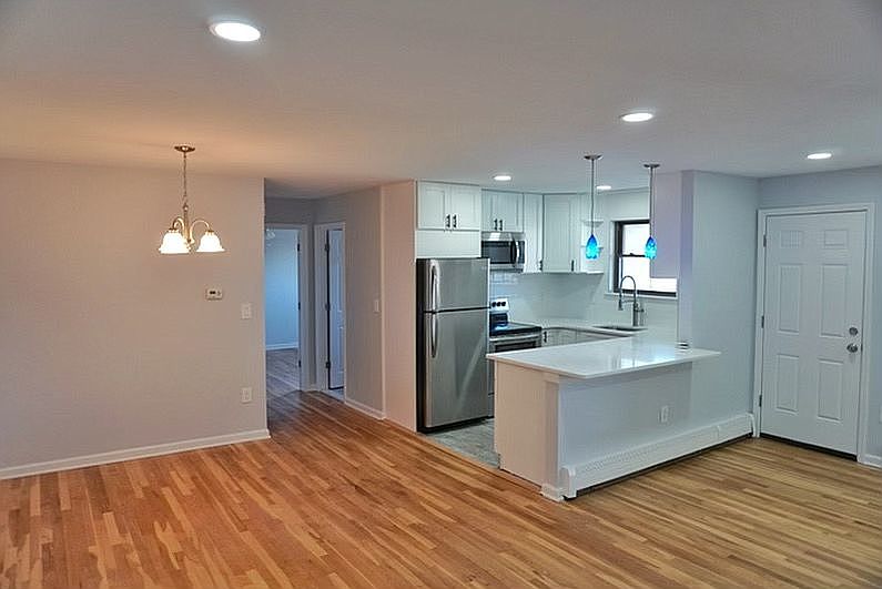 Newly renovated (ground level) 1 bedroom/1 bathroom condo steps away from the beach! 29 Wharfside drive features brand new kitchen with stainless steel appliances, new bathroom with walk in shower, hardwood flooring, balcony, and is equipped with a washer/dryer for your convenience. Renter responsible for Electric, Water, Sewer fees. No smoking in condo.