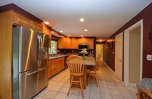 - Kit Dscrp: Dining Area, Countertops - Stone/Granite/Solid, Deck - Exterior, Flooring - Stone/Ceramic Tile, Kitchen Island, Stainless Steel Appliances, Open Floor Plan, Recessed Lighting, Window(s) - Bay/Bow/Box, Exterior Access