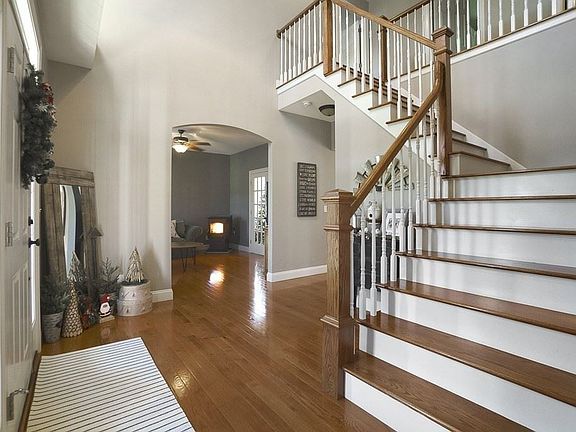 Your DREAM home awaits you! This stunning custom built home with over 3,000 sqft is now available. It is nestled in a beautiful cul-de-sac with plenty of space for the little ones to safely play. As you walk through the front door you will enter into a cathedral foyer that is decorated to get you in the holiday spirit, its a grand entrance! First floor offers an open concept kitchen, dinning, living area with 9ft ceilings, gas fireplace, and a pellet stove. PLUS a separate formal dinning and family room. Sparkling Hardwood floors throughout and carpeted bedrooms. Off the kitchen is access to the Trex decking that looks over the backyard oasis including inground pool, hot tub, outdoor shower, built in fireplace and covered patio! The 2nd floor has 4 custom over sized bedrooms, 3 full baths, and a Laundry area in the hallway. The Master bedroom has a walk-in closet and En-suite. Don't forget the finished walk out basement and 3 car garage. This home has been kept in immaculate condition!