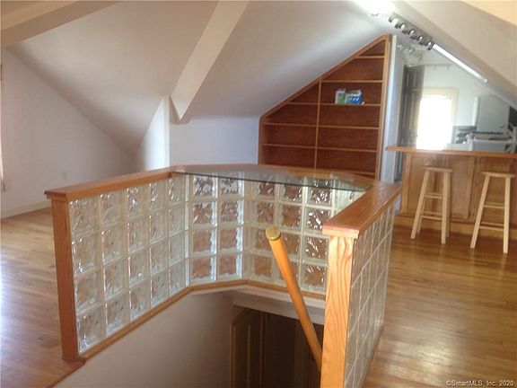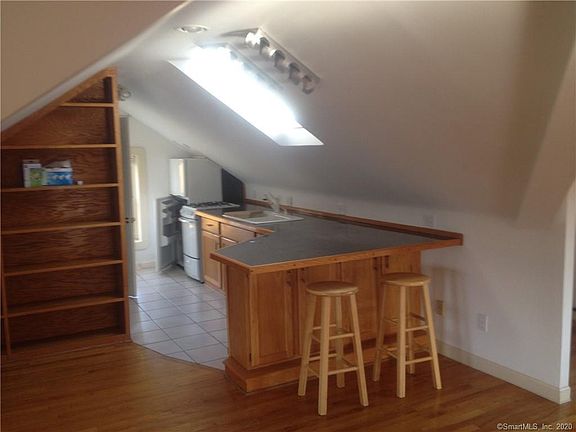 Executive 1 Bdr apt on the top floor in downtown Mystic on Stonington side, corner of Willow St. across from the post office. Unique architectural layout offers large Bdr. w/ built-in dressers and shelving. Full bath and large KT., H/W flooring throughout, gas heat, off street parking. No pets. Onsite laundry. Basement storage.Private backyard patio and barbeque area. Great walk to everything location! Sit on the expansive front porch and watch!
