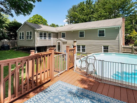 Come home to this beautifully updated four-bed, two-bath Raised Ranch in a highly desirable location! When you first drive up to this home and view the landscape you have a feeling of calm that only a true home can give. Through the entrance, you can pass through to your spacious family sunroom with vaulted ceilings and an abundance of light or enter into your open kitchen, dining, and living room area with a fireplace as the focal point. This upper level has three bedrooms and a bathroom while the lower level that looks out to the vast backyard has a fourth guest bedroom with a full-sized bathroom and an additional living area. In the backyard, you have a well-kept above-ground pool with a deck and there's even a wooded path for taking a much-needed stroll. This home has been meticulously taken care of and you will notice it at every turn.