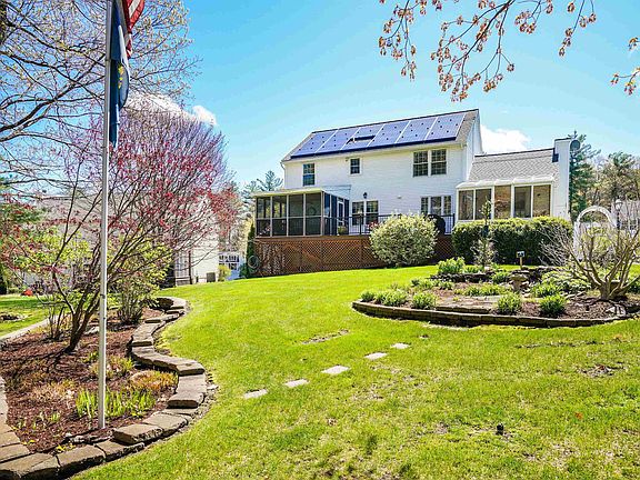 If you are looking for the WOW factor, look no further. Beautiful home in Olympic Village. Olympic Village is a picturesque subdivision of 72 single family homes surrounded by attractive common areas. It is located on 53 acres in historic Merrimack. This home is impeccable and has been well maintained by the original owners. Updated kitchen, hardwood floors, Bosch wall oven and warming drawer, Bosch Dishwasher, LG 5-burner gas cooktop, custom lighting, granite countertops and island encompass your kitchen area which includes an eat-in area. Family room with gas fireplace and built-in cabinets, vaulted ceiling. Wonderful sunroom with radiant heated floors, home office with French Doors, spacious dining room with beadboard. First floor laundry. Screened-in porch which leads to deck and spacious backyard which abuts common land and walking trails. Upstairs consists of 4 bedrooms, main bath has double sinks, electric heated floors, deep tub, travertine tile. Primary suite has vaulted ceiling, electric heated floors, double sinks, custom shower. Basement is partially finished with new luxury vinyl flooring and new lighting. Two-car garage is heated too! New roof in 2021, new heating system in 2019, central air installed in 2017, solar panels added in 2013, whole house generator in 2014, new kitchen in 2014. Nothing to do but make this home yours.