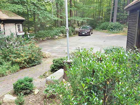 Glorious gem in very private setting, this 2 story cape with gambrel hip roof has the bonus of a 21x30 heated 2 level wood workshop attached barn. Kitchen refreshed with custom cabinets, new tile laminate flooring, quartz counter tops. This lovingly maintained home offers three wall mini-splits for cool summers. Relax on your tiled floor sun room with four sliders to fully enjoy the natural views and wildlife. Dining room features brick hearth w/wood stove flue, dutch door to sun room, berber carpet, custom built in bookcases wired for speakers, custom 10" wood tongue and groove wainscoting. Fully finished lower level offers built in desk areas on one side with trundle bed for guests or great teen space, or perfect for study or home office. Other side of LL has custom finished woodwork, built-ins, economical and cozy pellet stove on brick hearth plus mini split and FHW heat zone. Natural woodwork and gleaming hardwood floors. First floor laundry in 3/4 bath, newer windows 2013, fridge 2016, w/d newer. Large living room with open staircase to upper level offers plush carpet and ample sunlight. Louvered pine shutters on inside windows to remain, as well as all window treatments. Two story barn is currently used as a custom woodworking shop- separately zoned and dedicated electrical . Two outbuildings allow for storage of large items, mowers, snowblower. Agent is related to seller.