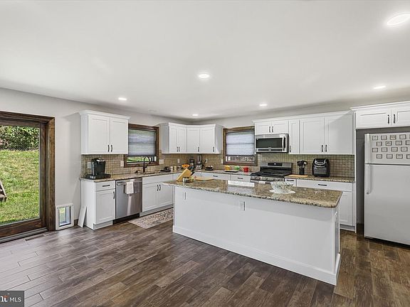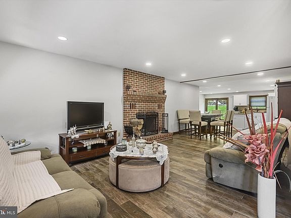 Welcome to this lovely brick ranch nestled on almost an acre lot with wooded views! Totaling over 2,202 square feet of finished living space, this property boasts ample living space and comfort for you and your family, along with wonderful features and upgraded fixtures throughout. Prepare to be wowed by the brand new eat-in kitchen installed in 2023 with tile floors, tile backsplash, upgraded countertops and a large island for prep space. Family room offers a cozy space to relax with a brick front wood-burning fireplace, perfect to enjoy on those chilly evenings connects to the dining room or additional living room space. Home features 4 bedrooms and 2.5 baths with natural stone tile floors. Spacious closets. Full baths both include double vanities. Custom built wood cabinets in the bathrooms and laundry room provide quality craftsmanship and offer practical storage solutions. Main level laundry with tile floors and utility sink for convenience. Unfinished basement for plenty of storage space, as well as a place to insert a wood stove with a chimney. Crawl space is insulated and rough in plumbing is available. Walk up attic for additional storage. One car garage. Newer roof in 2018. Newer HVAC in 2019. Newer H2O heater in 2020. Newer well pump in 2020. Newer water softener in 2020. Brand new kitchen in 2023. New doors and trim which have been professionally painted. New garage door. The attention to detail can be seen throughout the home. Conveniently located with access to highways for an easy commute. Pool has never been opened, please see SPD for details. A joy to own!