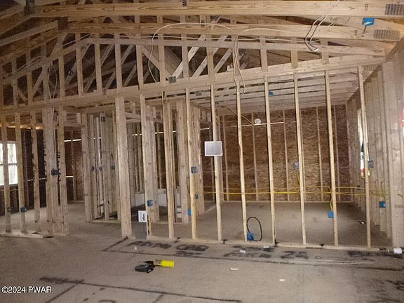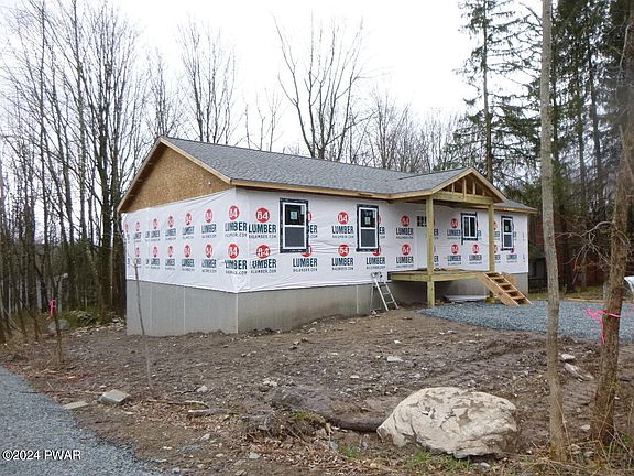 New construction with a projected 6/1/24 delivery date. Located within the gated community of The Hideout, Lake Ariel, with numerous amenities to enjoy year round. The home includes a new forced air heating and central air conditioning system. Living room and kitchen have vaulted ceilings offering a full open concept life style. The kitchen is finished with 42'' tall cabinets and granite tops. There is also a large island that offers seating for 4. Builder is including all appliance including washer /dryer in the large laundry/mud room. Master bathroom includes 2 individual vanities, make up desk area, full walk in shower and a soaking tub. Master bedroom also includes a large walk in closet. Exterior includes a large deck at the rear of the home along with a covered deck area at the front entrance. Flooring consists of waterproof laminate in all living areas and carpet in bedrooms. Ceiling fans are included in the 3 bedrooms and the vaulted living room. Finally, there will be a fully paved/blacktop driveway with accent landscape features at the front entry area.