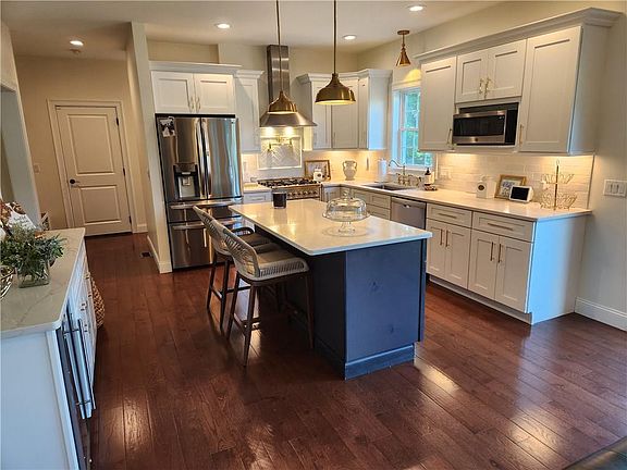 She's beautiful and she's smart! 2 year old farmer's porch colonial is load with technology, modern luxury and sophistication. Well appointed chef's kitchen will impress and delight with professional 5 burner Italian Ilve range, stylish quartz countertops and top of the line LG fridge. Large pantry with outlets for a tucked away coffee bar. Entertaining is easy with the wet bar, wine cooler and large island. Great flow with the dining room, kitchen and family room all connected and comfortably open. Stylish first floor home office with French doors. Hardwood floors and plantation shutters throughout the first give a seamless and timeless look. The large primary bedroom is elegantly simple and restful. Spacious primary bath with double sinks and large walk in closet with windows. There are three additional spacious bedrooms, all with hardwood floors and excellent storage. The technology is state of the art. Amazon Alexa Smart Lighting throughout, Ecobee Smart Thermostats, Lutron Dimmer Switches and Vivant Whole Home Security(negotiable) allow for the perfect ambiance in every room. There's a 60 amp Tesla charger in the garage too. The large farmer's porch and entertaining deck offer fantastic indoor/outdoor living. The walk out basement leaves the door open for future expansion. This home has it all.