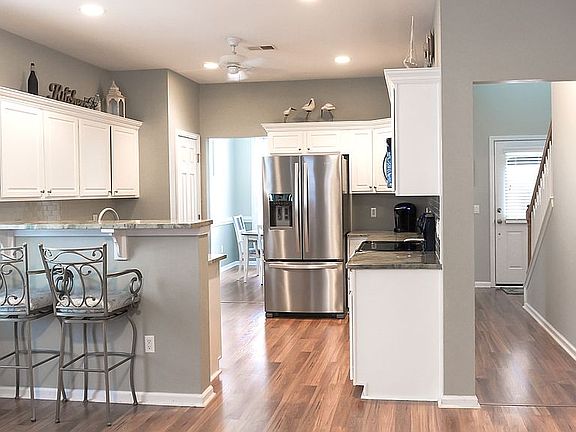 Situated on a premium lot with a wooded/partial lagoon view. One of the largest yards in the neighborhood. Very well maintained home offers granite counters, crown moulding trim, stainless steel appliances in kitchen. Huge, open family room. Large master bedroom and bathroom with cultured marble double vanity, garden tub, cultured marble walk-in shower. Half bath has a pedestal sink. Bedroom 2 has a HUGE walk in closet as well as a standard sized closet. Hunter Douglas window blinds throughout. Entire house professionally painted in neutral colors. Laundry room has upgraded washer/dryer. Detached 2 car finished garage. Irrigation system w/rain sensor. Tubes in the wall pest control system. Mature landscaping. Neighborhood Description Cute cottage style house with lots of southern charm. Located in a small community with 108 homes. Amenties located in sister neighborhood, Baynard Park and include 2 playgrounds, zero entry pool, fitness center, pavillion, tennis courts and more!
