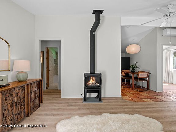 The home offers three comfortable bedrooms, one of which is currently used as a home office with a skylight that fills the space with natural light. The location is ideal, just two minutes from the heart of Woodstock and the Bearsville Complex, offering easy access to local shops, dining, and cultural venues. Nearby favorites include The Cub Market, Sunfrost Market and Garden Center, and the new Woodstock Library Complex. At the other end of the road, residents can enjoy a playground, dog park, and the picturesque Sawkill Stream, perfect for morning walks and connecting with nature. Wittenberg Park and Cooper Lake, two of the area's most beloved destinations for walking, painting, or photography, are also just minutes away.