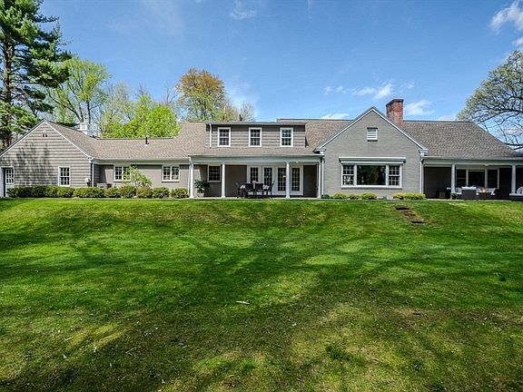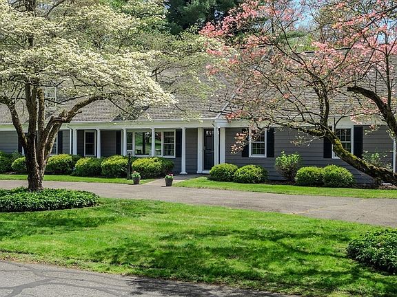 Nestled on a private 1-acre enclave, experience the feel of new construction in this 3825 sqft Cape. Meticulously renovated & handicap accessible, this home offers a unique floorplan w/ three bedrms w/ baths on 1st floor including the luxurious main suite. Revel in the allure of high ceilings, rich crown moldings, wainscoted walls, & pristine hardwood floors; the attention to detail is clear. Front to back Living rm w/ classic wood burning FPL & full picture windows w/ serene views will please. Discover a gourmet's dream in the expansive kitchen, replete w/ high end custom cabinetry, handsome granite countertops, six burner gas range, island w/ seating, plus eat-in breakfast area, & wet bar. The flow is ideal for entertaining w/the formal dining rm accented w/ French doors to outdoor patios and expansive grounds. Ascend the kitchen staircase to find 2 more bedrms w/ bath on the upper level. Make this your haven, steps off "the Green", enjoy walking, library, schools, shops, & parks!