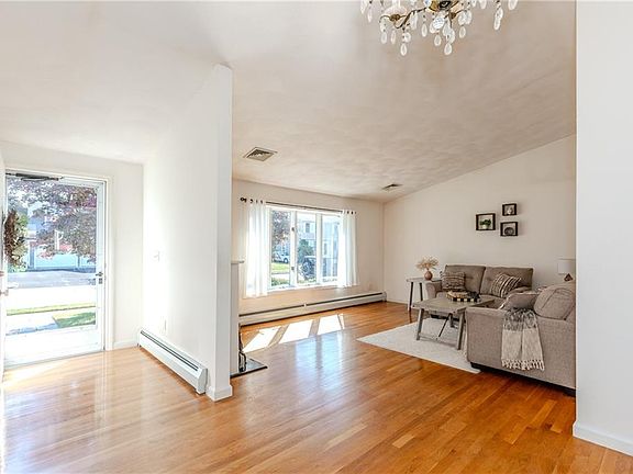 Enjoy one-level living in this spacious two-bedroom home! This custom designed ranch features vaulted ceilings, a primary bedroom with an en suite bathroom, laundry on the main level and central air conditioning. Hardwoods span the full layout and there is no shortage of natural lighting in every room. Bring your favorite furnishings because with close to 1,200 square feet of living space, you’ll have plenty of room to spread out. Accessed through the garage is a full, unfinished basement that provides plenty of storage and ample ceiling height, should you decide to finish the space. Conveniently located in the Hoxsie neighborhood, you’ll have quick access to local shopping and activities, while being tucked away on a less-traveled street. Come and see why the current owner has loved this home for 34 years!