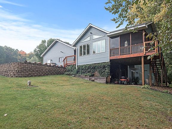 Located just minutes from charming downtown Buffalo, this immaculately maintained home sits on 5.84 private acres with stunning lake views in two directions—enjoy the sunrise over Mink Lake and the sunset over Buffalo Lake. The home features 6 spacious bedrooms (3 on the main level), 3 bathrooms, and thoughtfully designed living spaces including both a living room and a family room on the main level. You will also find an open floor plan with vaulted ceilings & hardwood floors. The large kitchen has loads of cabinets, granite countertops & SS appliances - including a double oven! The family room features gorgeous wood-paneled walls & ceiling, complete with stone surround gas fireplace, making it a room you will love to spend time in. Adjacent to the family room is the perfect screened-in porch overlooking Buffalo Lake and surrounded by mature trees. The primary suite and laundry are conveniently located on the main level for easy one-level living. The finished walkout lower level offers a large recreation room, 3 additional bedrooms, a 3/4 bath, and a generous storage room that could also be used as an exercise room or home office. Outdoors, the home is beautifully landscaped with over 145 hosta plants in the backyard, two storage sheds, and an oversized 3-car insulated garage with 10’ ceilings and thermostat-controlled heating. Recent updates include a brand-new septic system, a new roof (2021), and a new furnace, AC, and humidifier (2019). This is the perfect blend of privacy, beauty, and comfort—you do not want miss your opportunity to own this exceptional property!