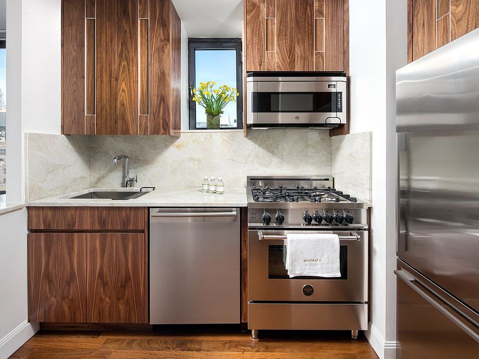 Two bedroom two bath apartment home with southeastern exposures through floor to ceiling windows features brand new kitchen with window and pass through breakfast bar and designer appliance package. Split layout and good closet and storage space with washer/ dryer in unit and private balcony that overlooks city views make this one not to be missed. Net effective listed.