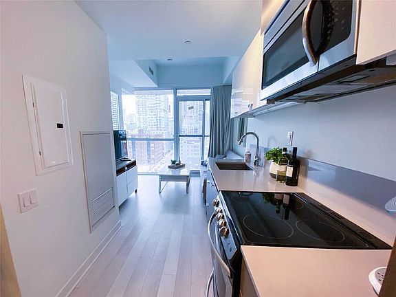 Furnished One-Bedrm Suite@Stylish Theater/Financial District.9' Flr To Ceiling Windows W/Unobstructed View.Gorgeous Finishes, European Cabinetry, Integrated Appl, Engineering Flr Thru-Out.Furnished W/Designer Flair & Modern Decor.Resort-Like Amenities:Gym/Yoga Studio/Outdoor Pool/Hot Tub/Lounging Area/Bbq Lounge/Party Room.24 Hr Concierge. Discover The Excitement Of Walking To Yr Favorite Cafes, Restaurant, Trendy Shops Or Hop On Subway. Walking Score@100.