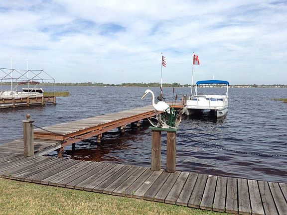 This is a lot leased community. You own the house but rent the land. No property taxes. Sunrises…..and Sunsets! Watch the beauty from your tastefully furnished “Lakefront Home on Lake Henry.” Take in a breathtaking lake view from the four-season Florida room, dining room, kitchen AND living room. You can enjoy a cozy dinners just for two by the water or the flow in this home is perfect for welcoming family and friends. Entertaining will be a delight for everyone as they enjoy your beautiful setting. A well-appointed kitchen makes meal preparation both fun and easy. The master bedroom suite has closet space galore and a large en suite bathroom with plenty of drawer space. The guest bedroom and guest bath across the hall accommodate family or friends comfortably. 290 Alpine Drive Features: Many, many updates include new plywood and ceramic tile, as well as new kitchen cabinets. A separate screened room is off the Florida room making a great area for parties or cook-outs beside the lake. Your own private dock awaits your pontoon boat, fishing boat or paddle boat if you enjoy being on the water. The current owner’s pontoon boat could be an optional purchase. You have been looking for a home like this one for quite a while so give us a call and make a date for your private showing soon!