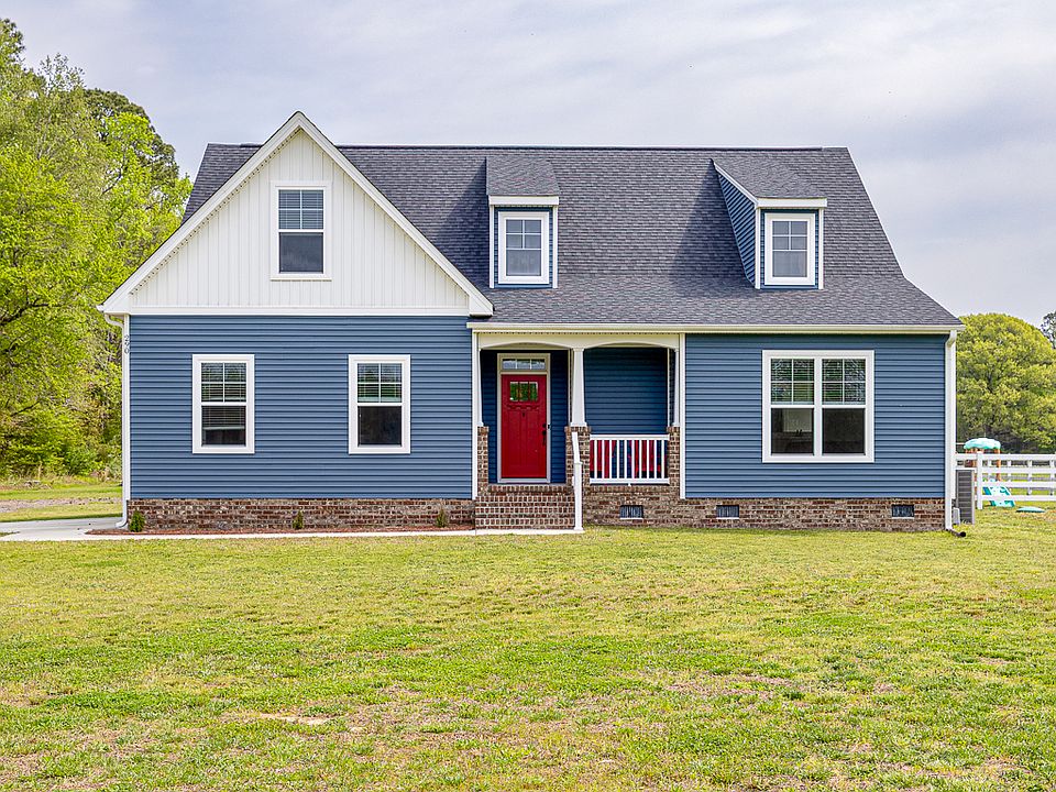 Gorgeous 2-story Craftsman-style home in Suffolk, built in 2022! This spacious home features a large open floorplan with two bedrooms on the first floor, both with attached bathrooms. The main primary bedroom includes a large walk-in closet and ensuite bath w/dual sinks and soaking tub. Enjoy the cozy stone fireplace, bright living area, and dedicated dining space great for entertaining. Upstairs offers two additional generously sized bedrooms. Step outside to a fully fenced yard, roomy deck, and oversized driveway leading to a 2-car garage. Additional perks include an EV charger and whole house generator. Don't miss this beautiful, modern home with space, style, and comfort!