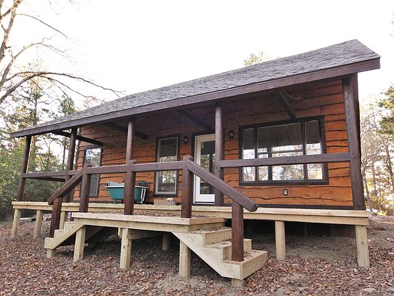 Located atop a hill on 4 wooded acres on the edge of Smithville, OK, this cozy cabin boasts 640 sq. ft. of open design living space, including full bathroom with claw foot tub and separate shower, laundry/pantry room, and a sleeping loft. Outside is a nice yard area with 300 sq. ft. of covered porch. The cabin has new wiring, new Pex plumbing, 2 ton Gree mini-split heat and air unit, washer and dryer, stainless side by side refrigerator and propane range. The custom Schuler kitchen cabinets will be installed in early June (watch for photos), and the flooring is Morning Star XD engineered bamboo. Handcrafted staircase and custom cedar beams and posts are featured throughout the cabin. Additional furnishings negotiable. This cabin will make an excellent rental in the growing tourism segment of the area. Located minutes from the Mt. Fork River and an easy 30 minute drive to Beavers Bend State Park and Broken Bow Lake.