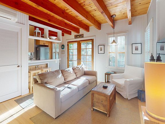 Charming single family home in the far East End. This immaculate one bedroom cottage is filled with beautiful detail. The ground floor features an open kitchen/living area with gas fireplace, bamboo flooring, beamed ceilings and bead board paneling. Full bath as well. A unique turret contains a spiral staircase with access to the upstairs bedroom and full bath. Downstairs is a bonus room and storage area. Windows everywhere bring in lots of natural light. Private outdoor space with terrace, deck, outdoor shower and storage sheds. Great rental history as well!