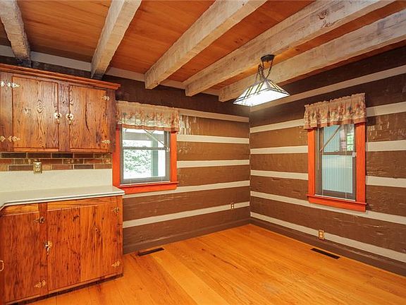 Your piece of heaven right outside of town. Large kitchen with all modern ammenities. 400 W solar panels, built in sauna in basement, Replica old timey gas stove, but is not very old. This is a car and animal lovers dream. Large in ground pool with pool house, detached garage with finished space above. Home has rare Hemlock logs with full walk out basement