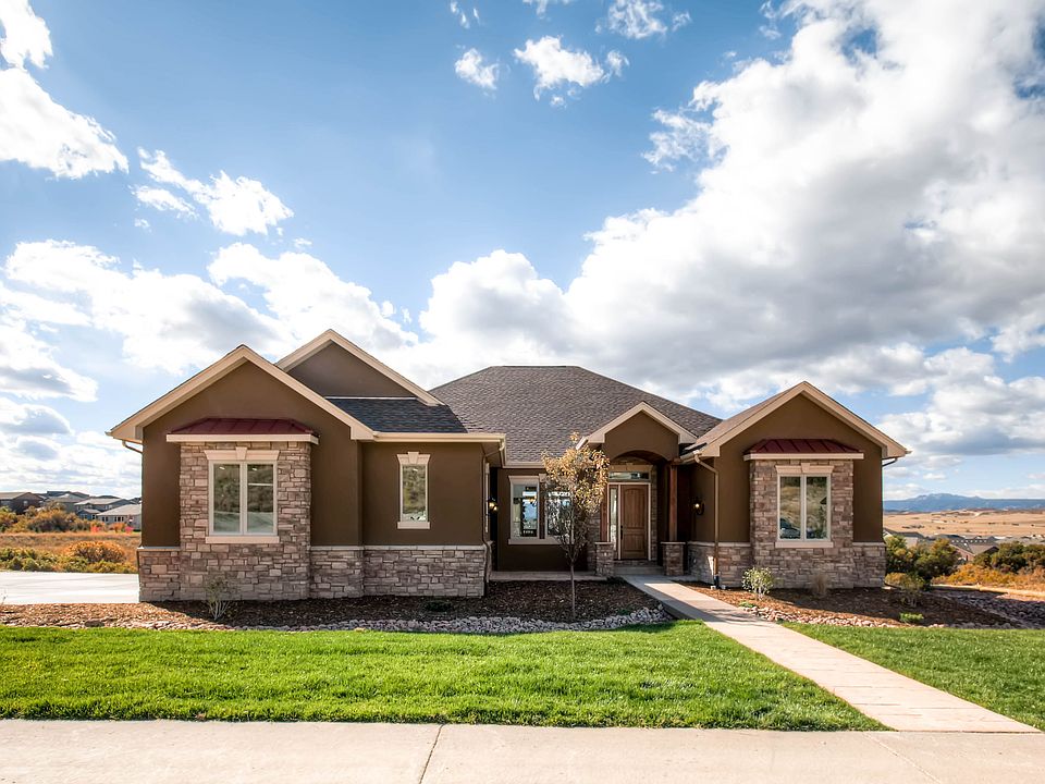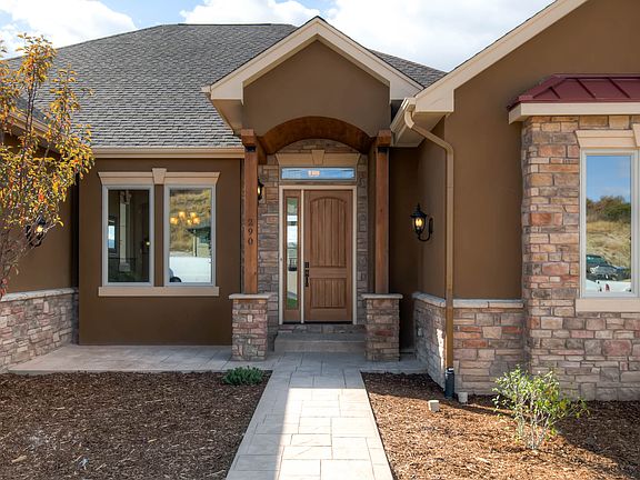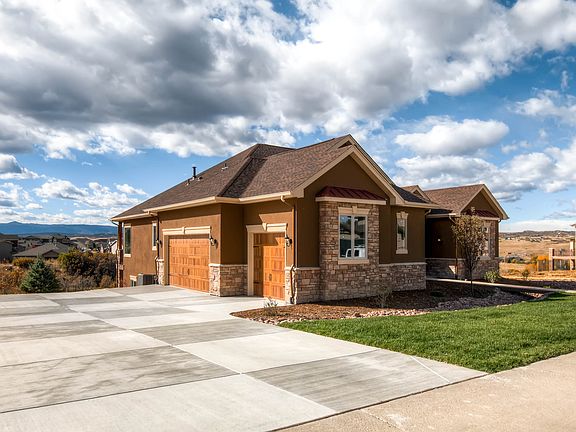 Beautiful custom ranch home with everything you need for main floor living. Enjoy panoramic views of Pikes Peak * Large, private/spa-like master retreat with double sided fireplace & heated floor * Open floor plan * Gourmet kitchen * Butler's Pantry * 10 ft. ceilings on the main floor * Vaulted ceilings in Great Room * Solid, real hardwood throughout main floor * Custom stone wall with linear gas fireplace * Oversized laundry/mud room * Oversized 3 car garage with tons of room * Finished walkout basement * Theater room * 9 ft. ceilings * Full wet bar * Tons of storage * Near Plum Creek Golf Course, trails, paths, & open space * Easy access to I-25 and prime shopping *