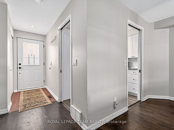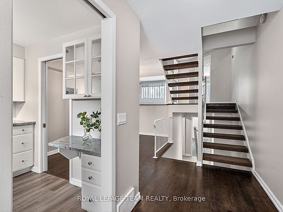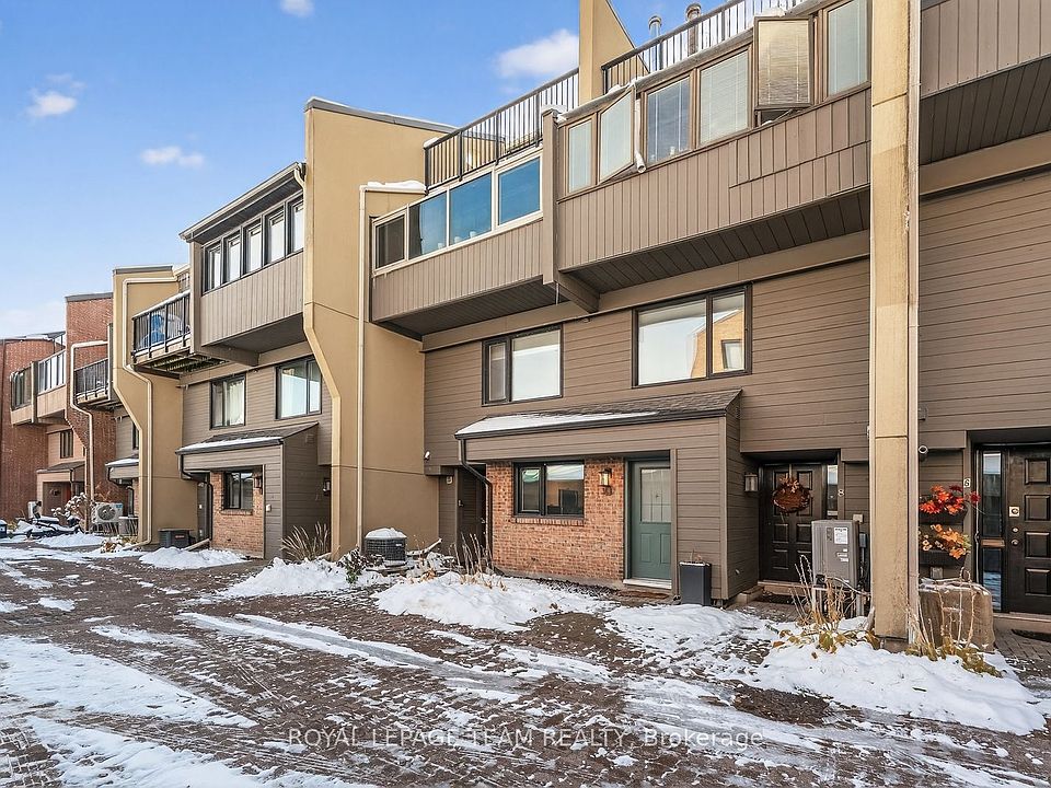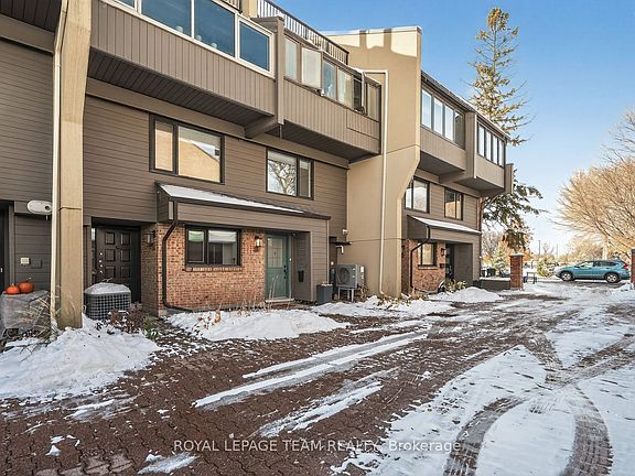 Beautiful, light-filled townhome in an exclusive enclave steps from the ByWard Market. This bright, architecturally intriguing home features floating staircases, airy railings, and exceptional natural light across multiple levels. The generous kitchen offers granite countertops, abundant cabinetry, and a lovely window overlooking the private courtyard. The dining room flows effortlessly into the upper and lower levels.A half-level up, the living room impresses with a gas fireplace, built-ins, and patio doors to a large private deck shaded by a mature tree-an unexpected urban retreat. This level also includes a spacious primary bedroom with wide window, full wall of closets, and a stylish bathroom with deep shower.Upstairs are two bright bedrooms with great closets and a full bathroom. The lower level adds a large skylit rec room, laundry room, and ample storage.A rare blend of calm, privacy, and downtown convenience in a beautifully designed home.